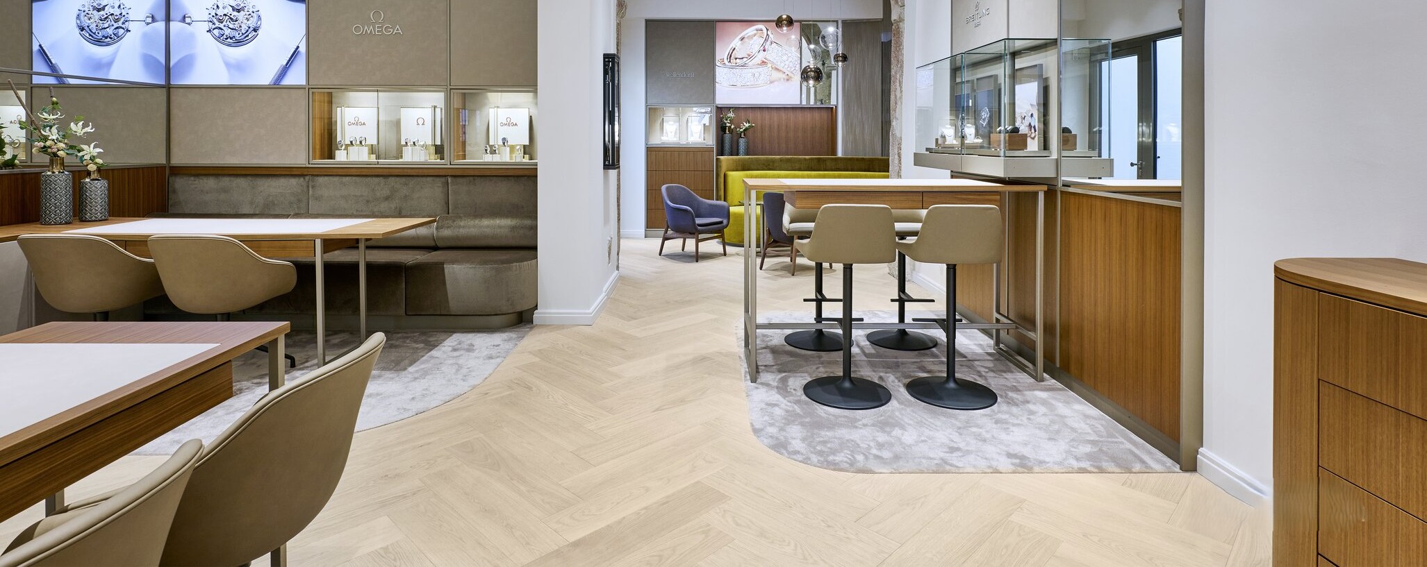 Prezentacja możliwości podłóg (parkiety lub deski) w salonie Luboń/Poznań i konsultacja z klientem.