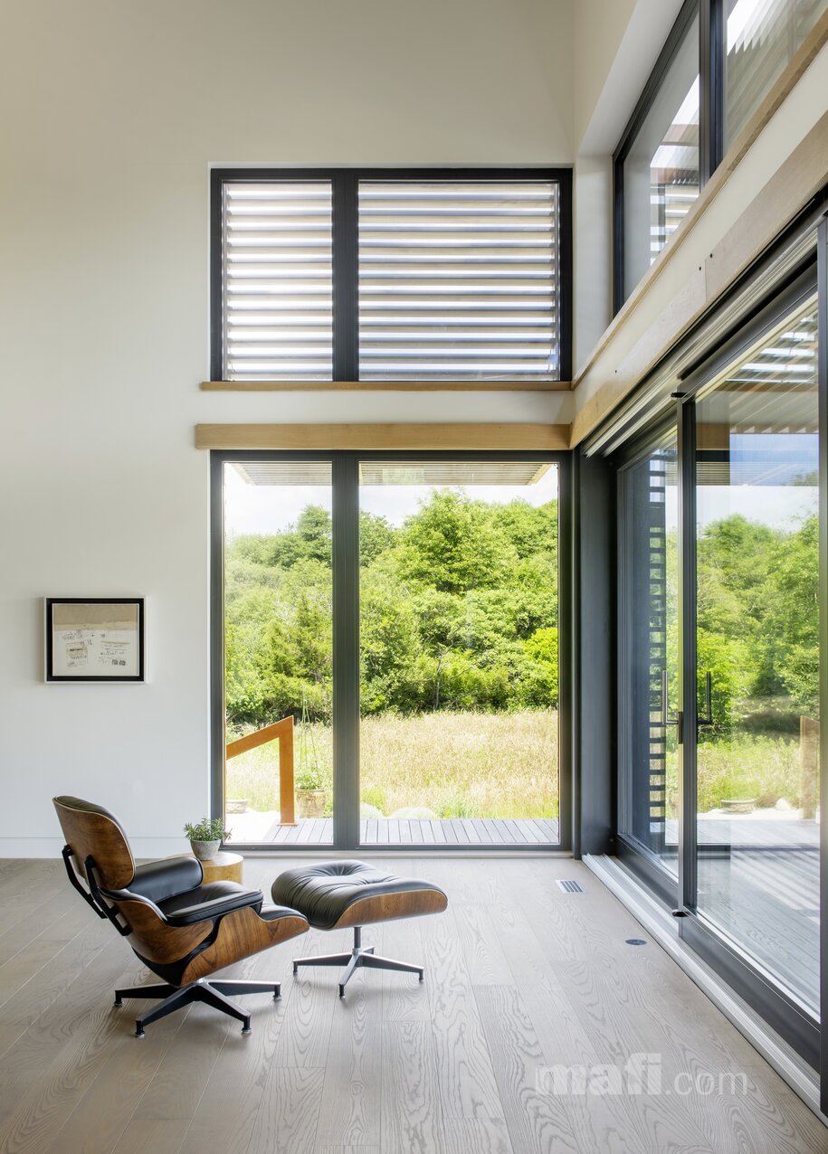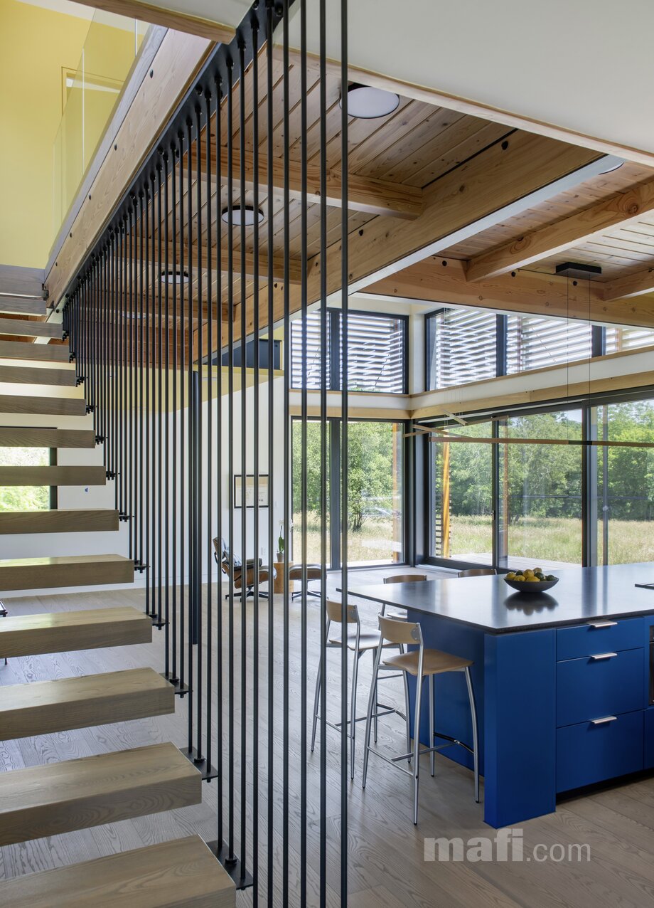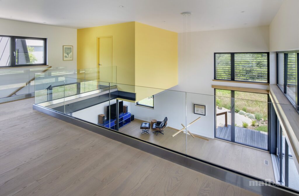 W projekcie Westport postawiono na zdrowy mikroklimat. Deski mafi są wykończone wyłącznie naturalnymi olejami na bazie lnu, co pozwala drewnu filtrować powietrze. Brak szkodliwych substancji sprawia, że jest to dom przyjazny dla mieszkańców i środowiska.