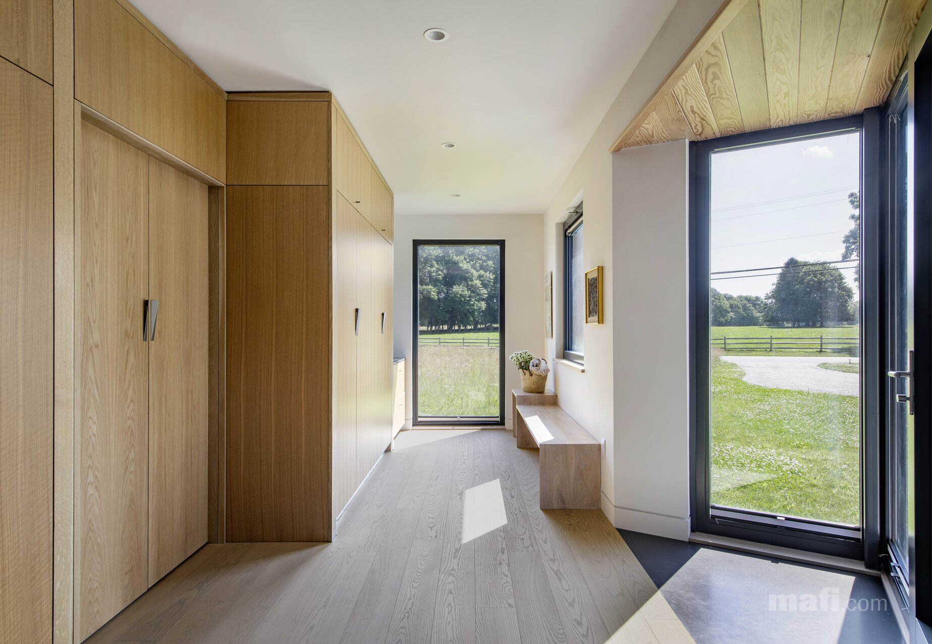 Duże przeszklenia oznaczają duże zmiany temperatur i nasłonecznienia. Symetryczna, 3-warstwowa konstrukcja mafi (jesion na wierzchu i jesion na spodzie) zapobiega prężeniu się drewna. Deska pozostaje stabilna.