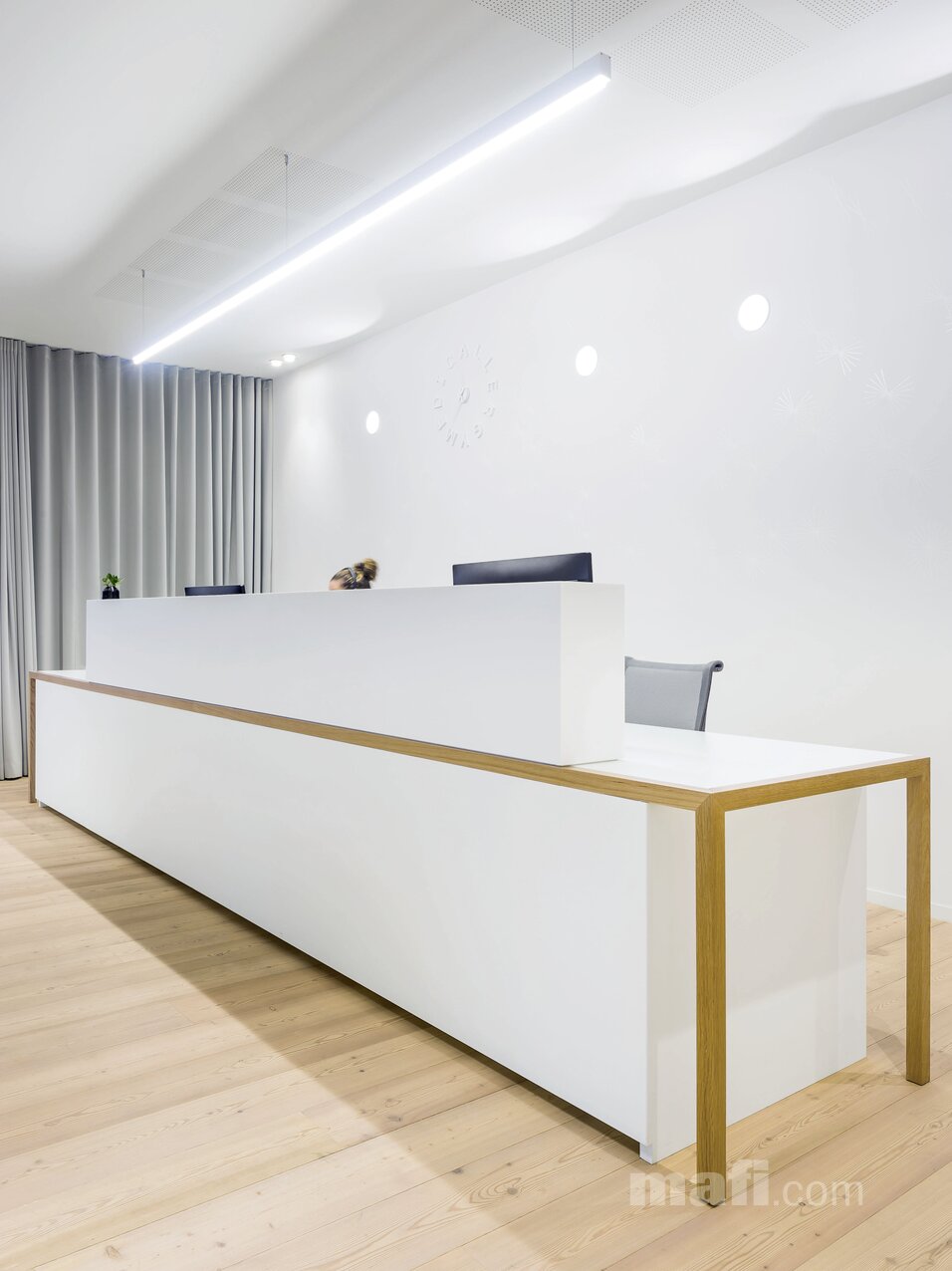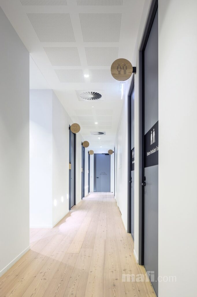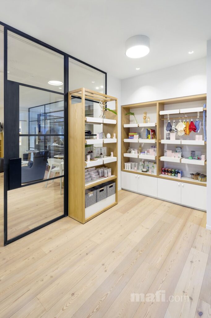 Modrzew to jedno z najtwardszych i najbardziej wytrzymałych drzew iglastych. W ofercie mafi zyskuje on nowoczesne oblicze – od jasnych, niemal surowych odcieni (jak na załączonej wizualizacji), po głębokie, szczotkowane tekstury.