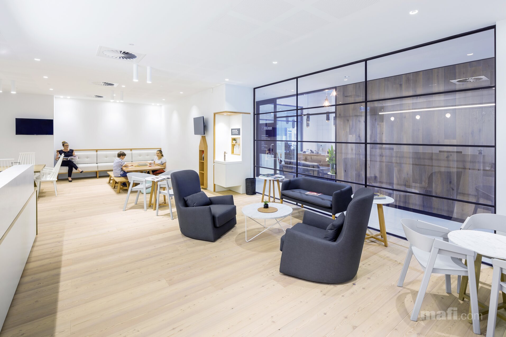 Modrzew to jedno z najtwardszych i najbardziej wytrzymałych drzew iglastych. W ofercie mafi zyskuje on nowoczesne oblicze – od jasnych, niemal surowych odcieni (jak na załączonej wizualizacji), po głębokie, szczotkowane tekstury.