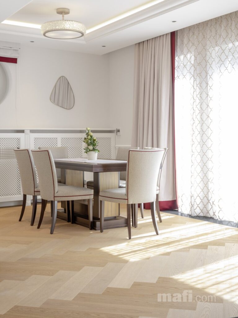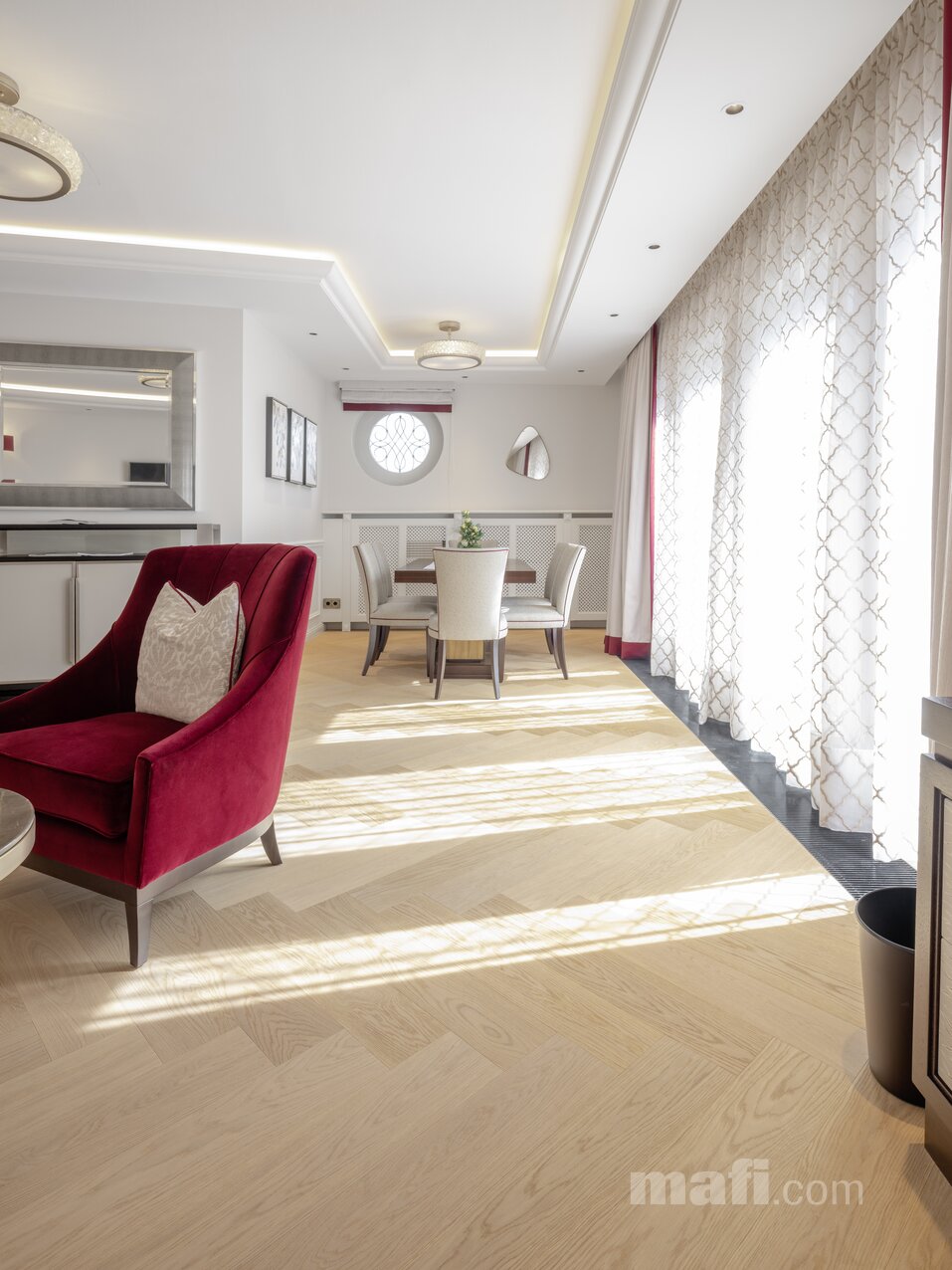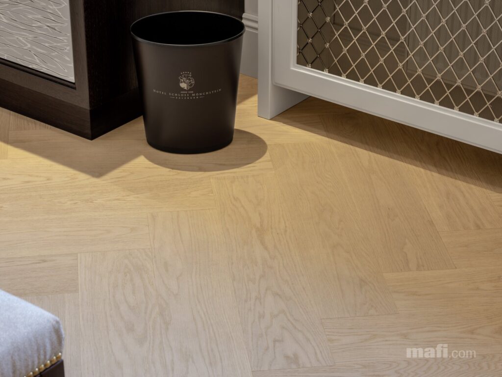 Wykorzystany tutaj wariant to prestiżowa klasa mafi oak clear – esencja czystości i szlachetności naturalnego drewna.